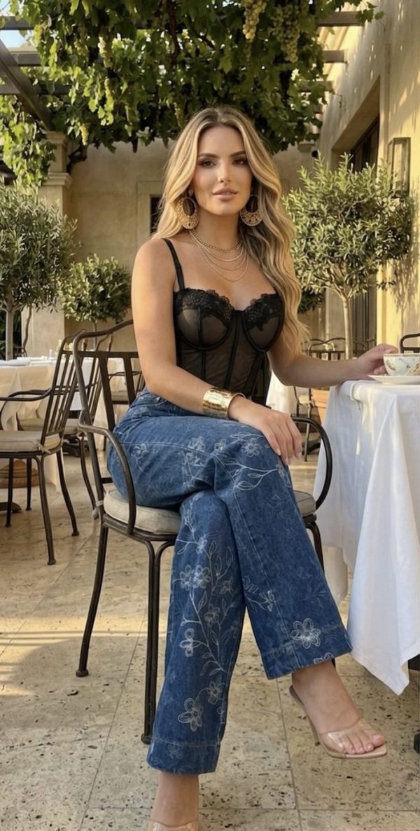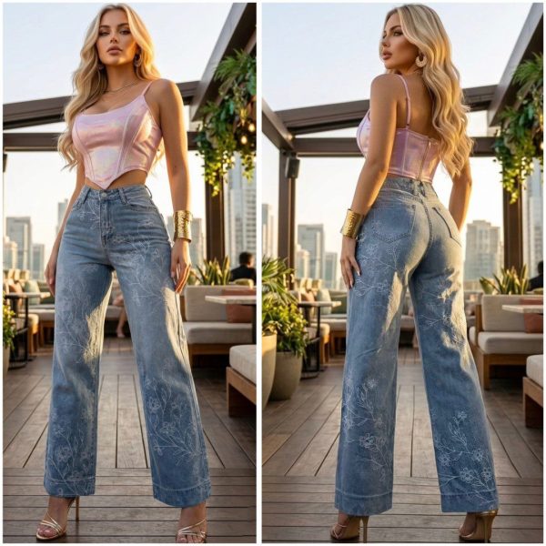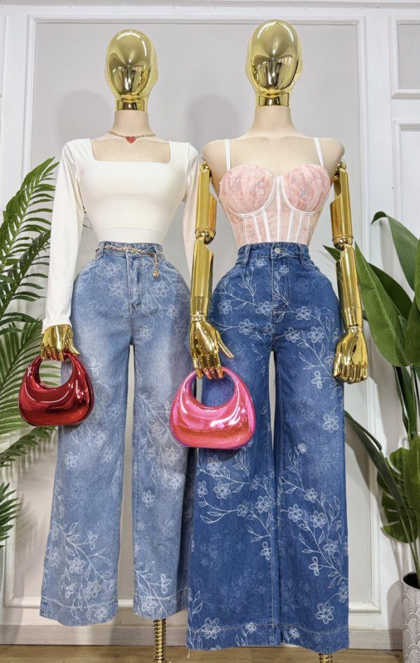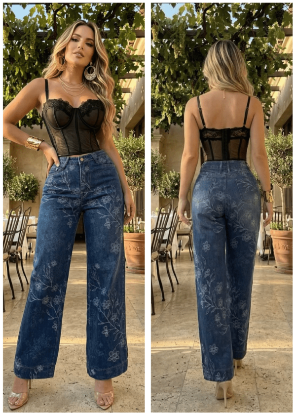 ♥️💐 JEANS WIDE LEG CON GRABADO FLORAL