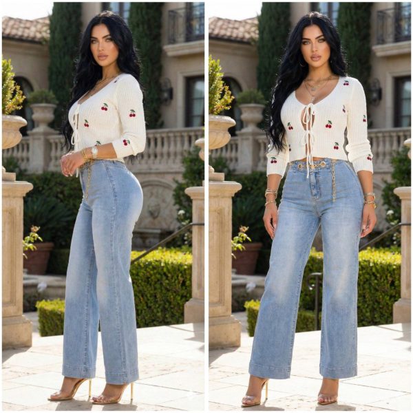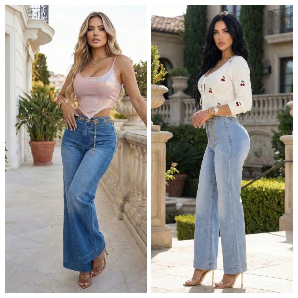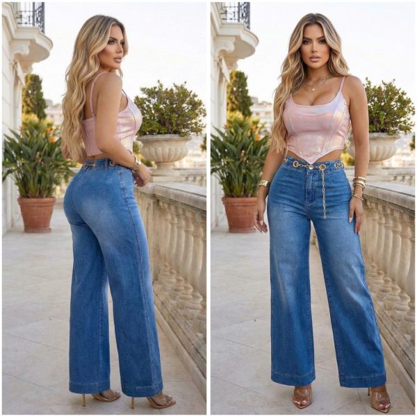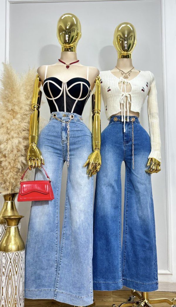 💛 JEANS WIDE LEG CON OJALES Y CADENA