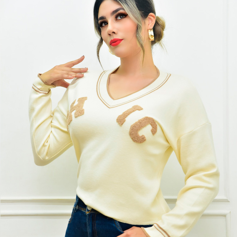 Suéter cuello en “V” con línea y ribetes estilo Cricket. Bordado “CHIC” al frente 📌 *Corte fiel a la talla*