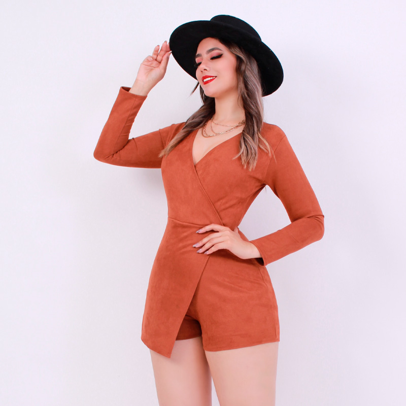 Jumpsuit de gamuza, curzado al frente apariencia short falda. Manga larga. Stretch. 📌 Corte fiel a la talla 📦 NACIONAL 🇲🇽 Calidad: 💎💎💎💎💎