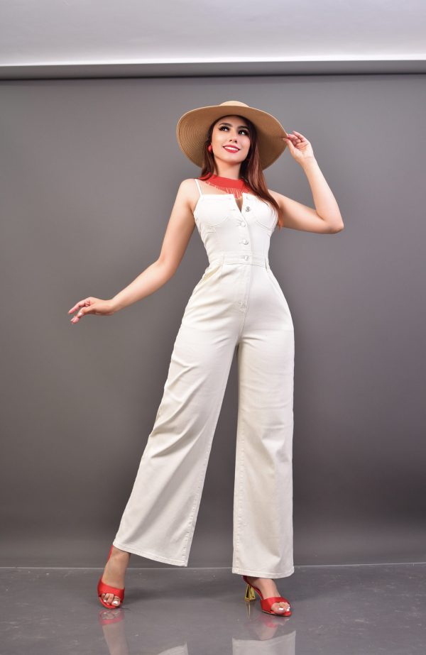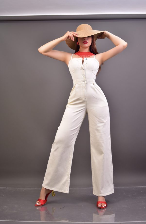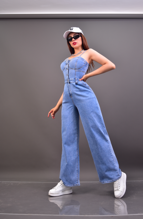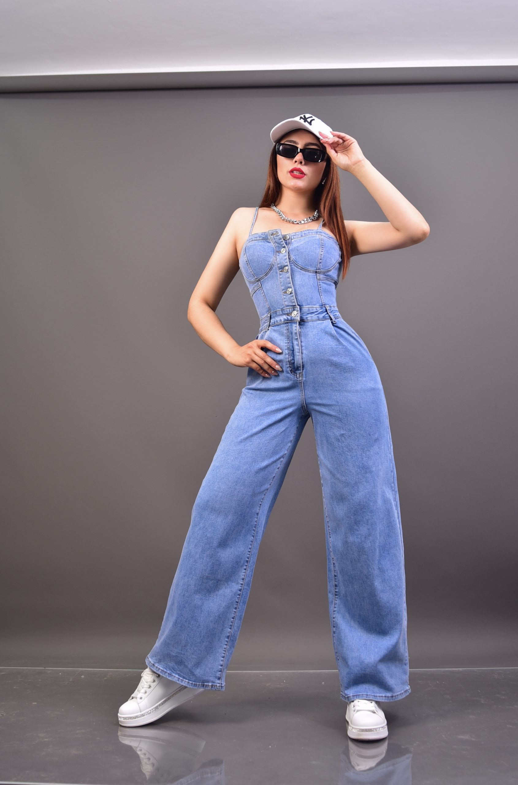 Este jumpsuit de mezclilla es una prenda versátil y cómoda que se adapta perfectamente al cuerpo.