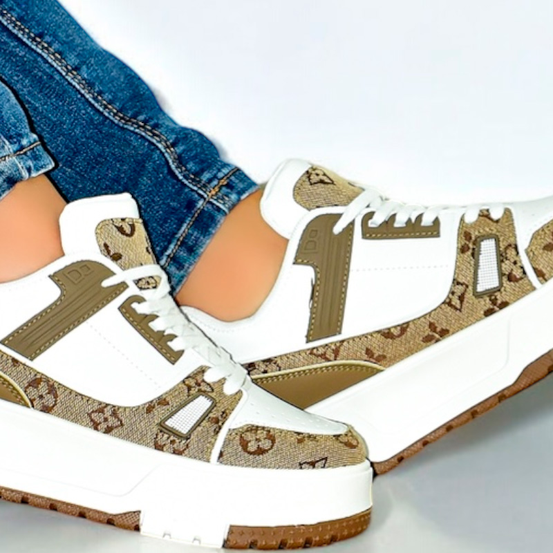 Sneaker silueta clásica de basketball, estampado inspiración LV.