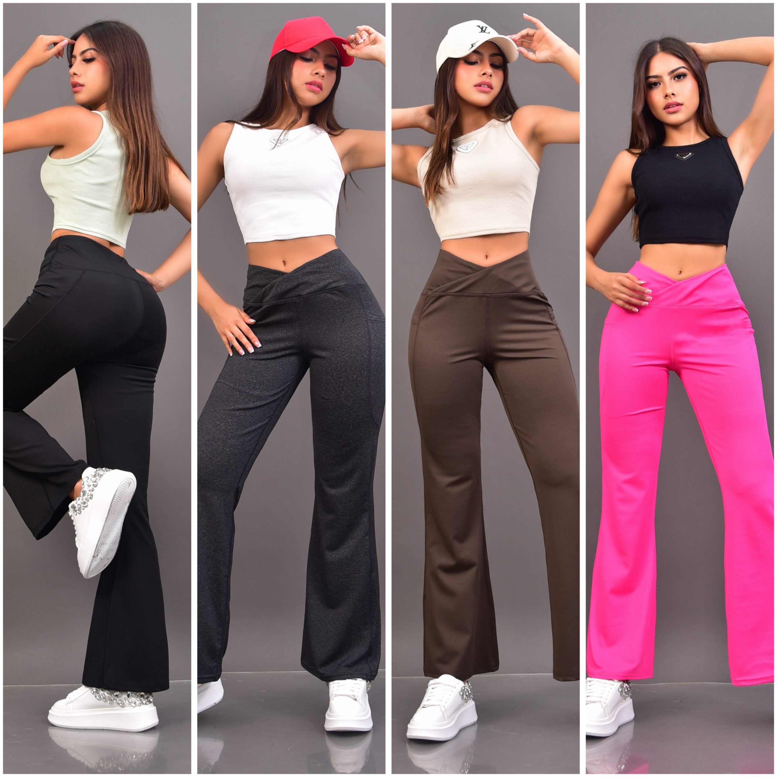 Leggings estilo campana, cintura alta que ayuda a estilizar la figura. Tela elástica y ajustada. Bolsillos a los costados.