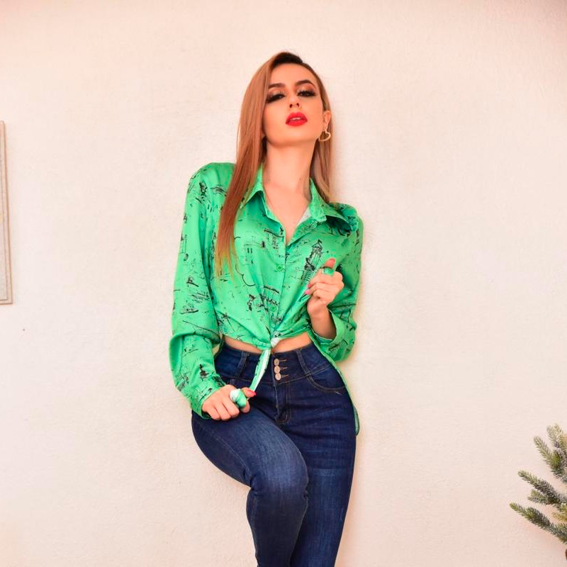 Abertura en costado. La puedes utilizar amarrada o abierta. Se puede usar tanto con jeans, leggins, short.