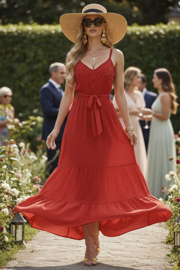 Vestido de tirantes delgados y escote en V favorecedor.