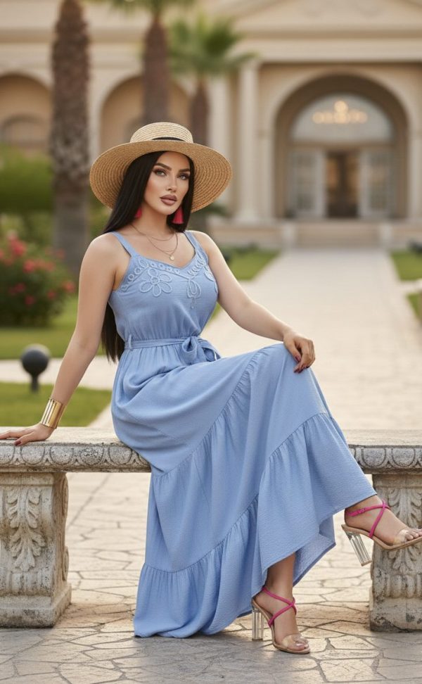 🌼☀️ MAXIVESTIDO BORDADO MONOCROMÁTICO