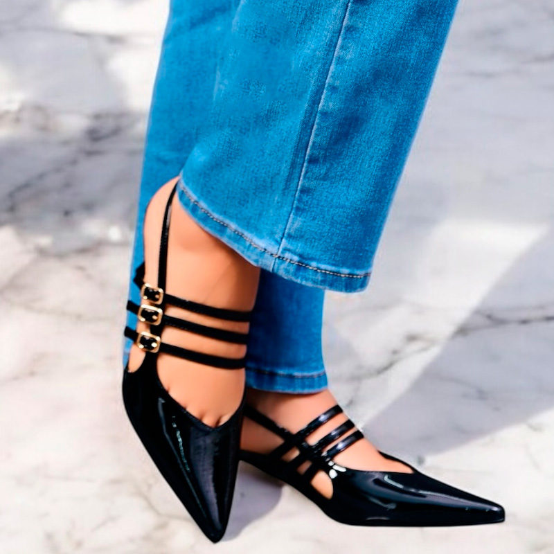 Zapatillas destalonadas. Charol, tres correas. Punta fina. Tacón: 5 cm IMPORTACIÓN USA 🇺🇸