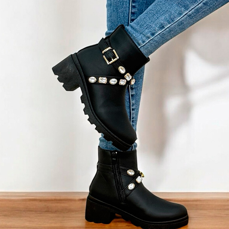 Chelsea boots con suela tactica. Cierre lateral. Aplicacion de gemas en cintas cruzadas. IMPORTACIÓN USA 🇺🇸