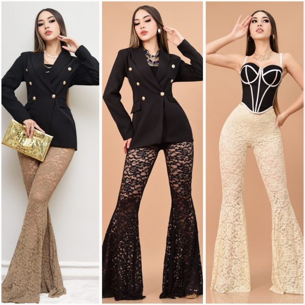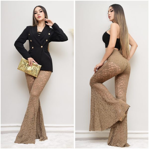 💗 PANTALON ACAMPANADO DE ENCAJE FLORAL