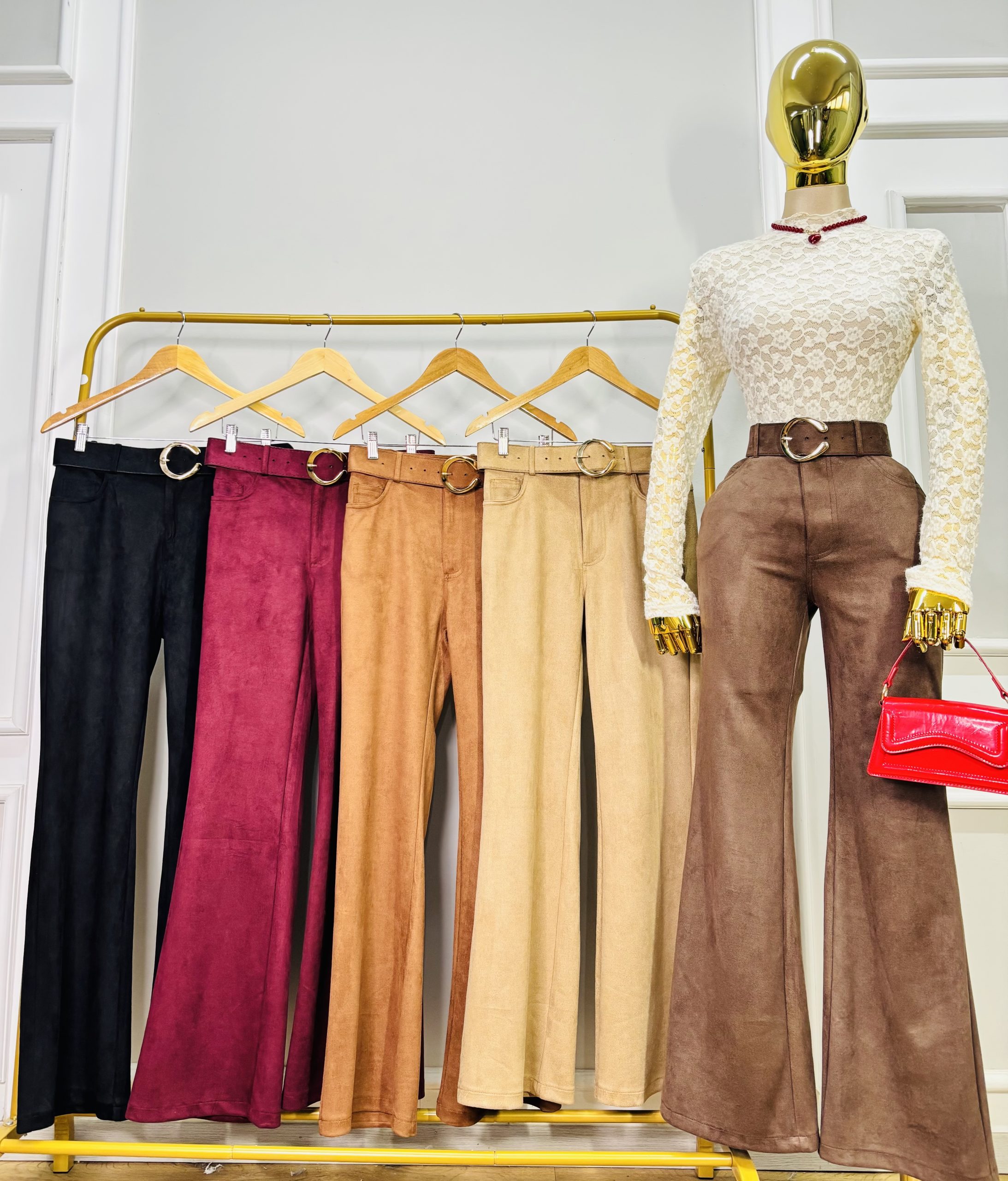 💖 PANTALON ACAMPANADO DE GAMUZA CON CINTURON