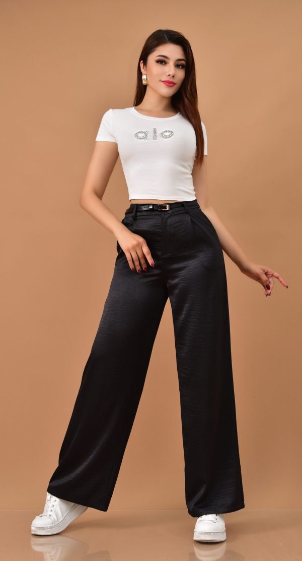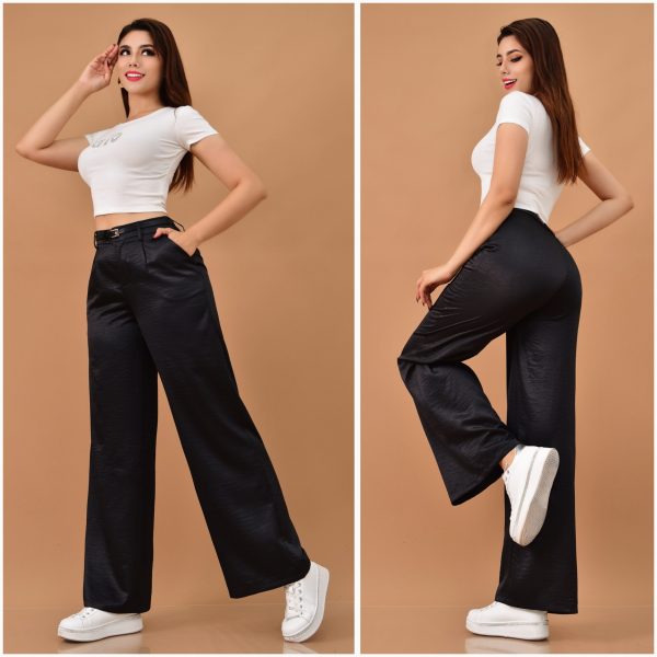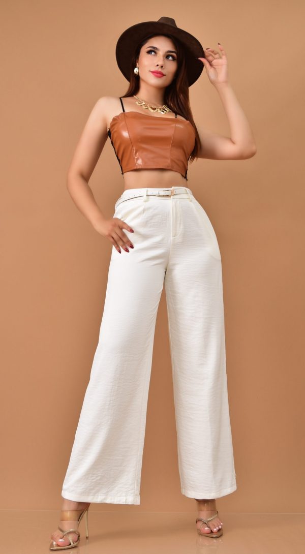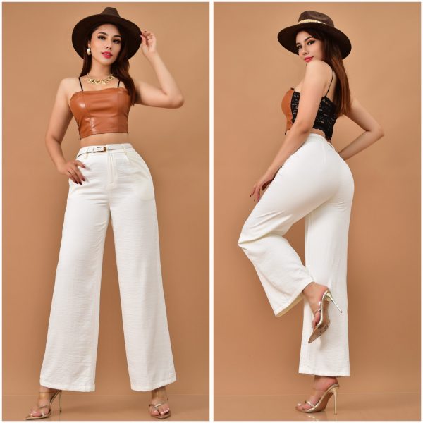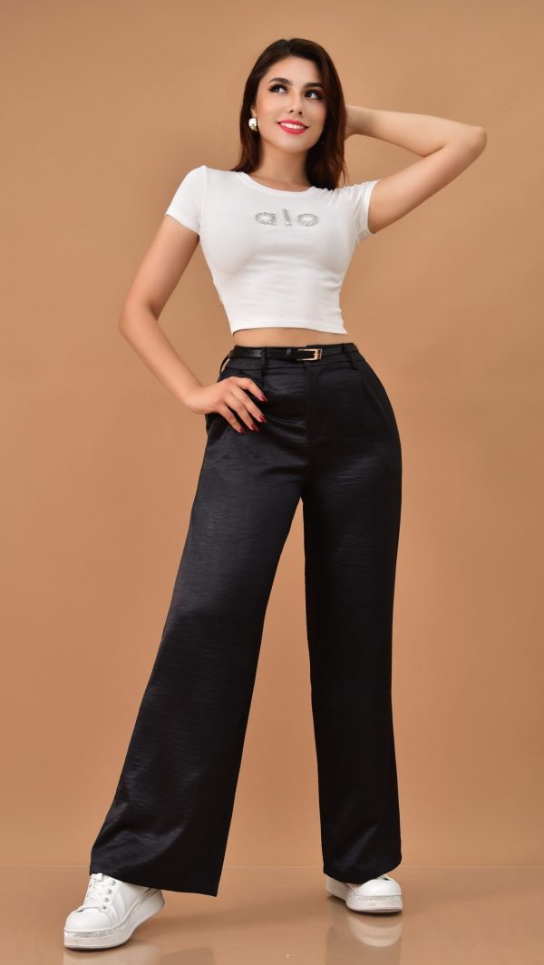 Pantalón de tiro alto con corte amplio. Incluye cinturón delgado a juego que realza la cintura y aporta un toque sofisticado. Confeccionado en tela ligera tipo satín con caída fluida, perfecto para combinar en outfits casuales o de oficina. Bolsillos laterales funcionales. Elástico en pretina trasera. Versátil, moderno y fácil de combinar. 🫶🏻