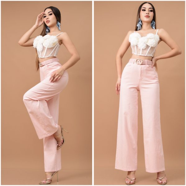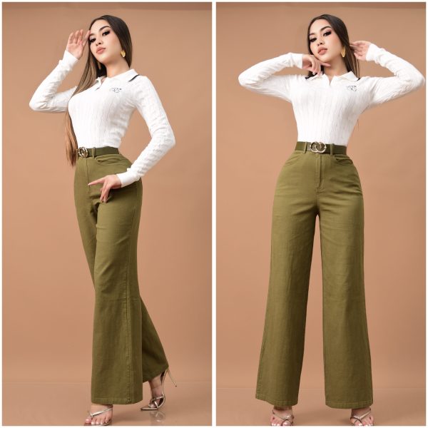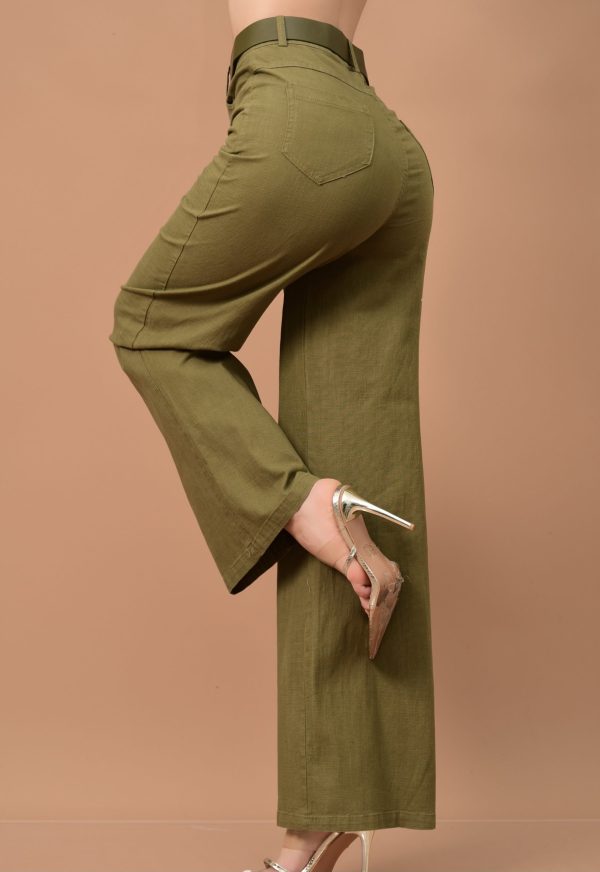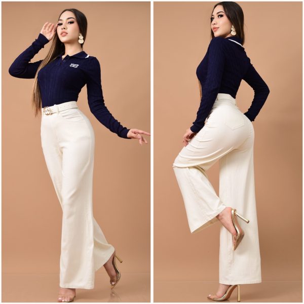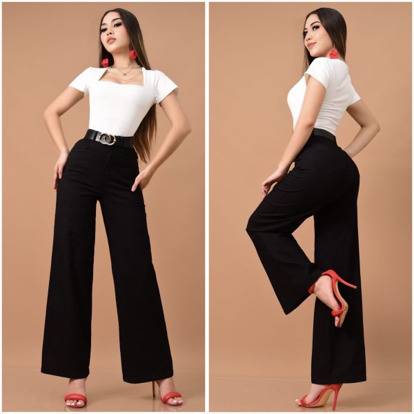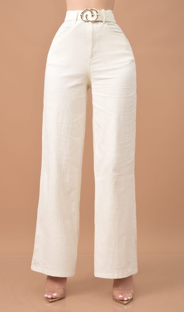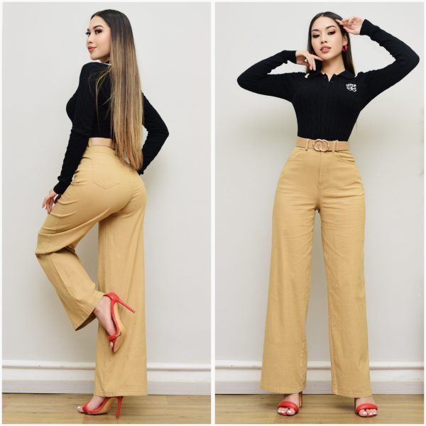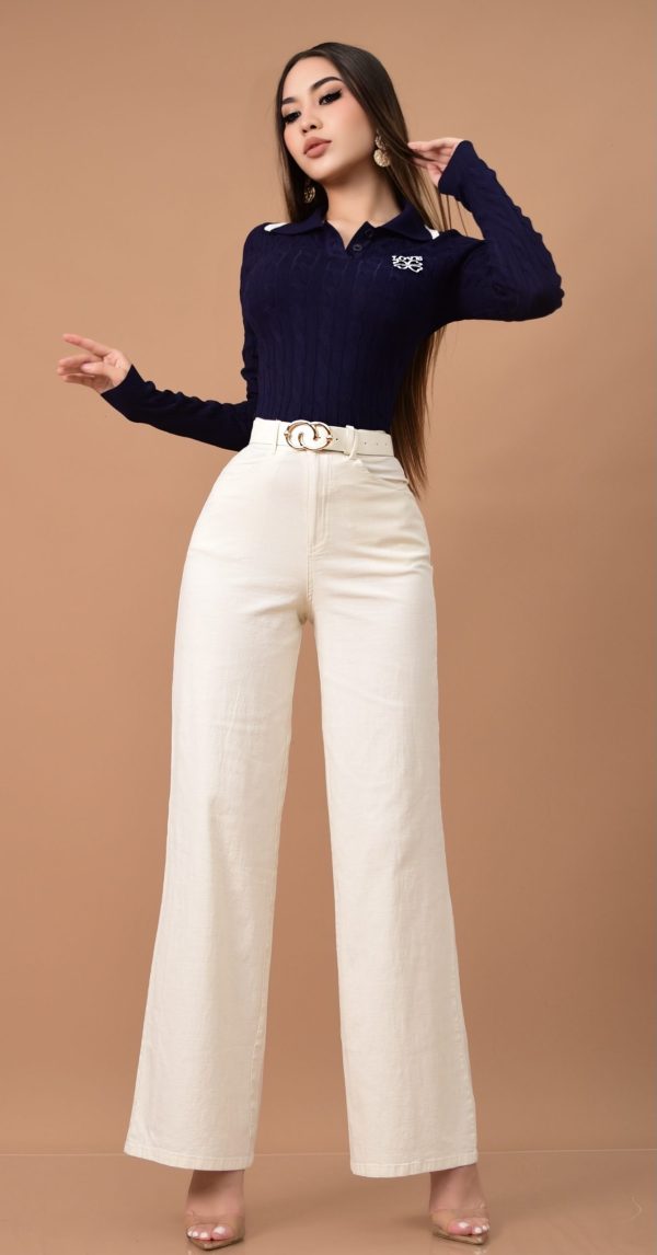Pantalón de corte amplio. Diseño tiro alto que estiliza la figura y favorece la silueta. Confeccionado en algodón fresco con stretch. ✨✨. Incluye cinturón con hebilla metálica. Bolsillos delanteros y traseros funcionales. Ideal para un look moderno y sofisticado.