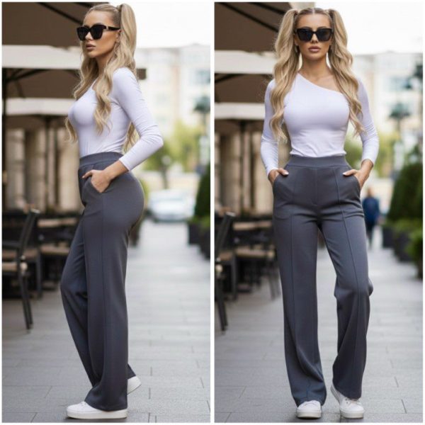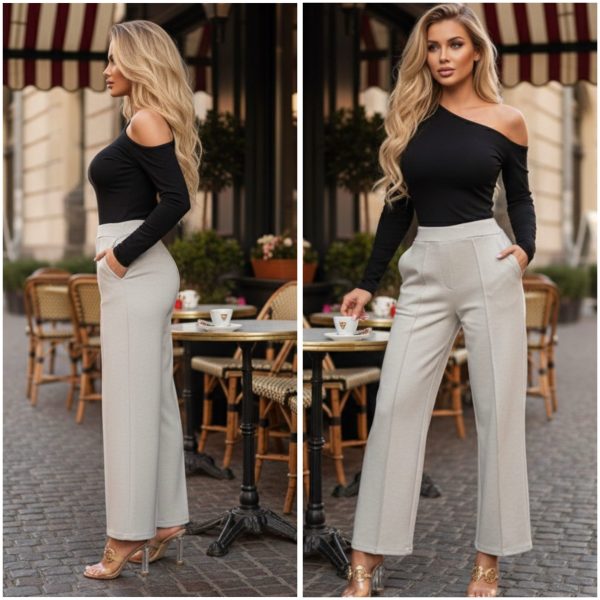Pantalon súper suave al tacto, cómoda y relajada. Corte Wide leg (pierna ancha). Textura ligera y pretina elástica, costura central marcada en cada pierna. Tela stretch.