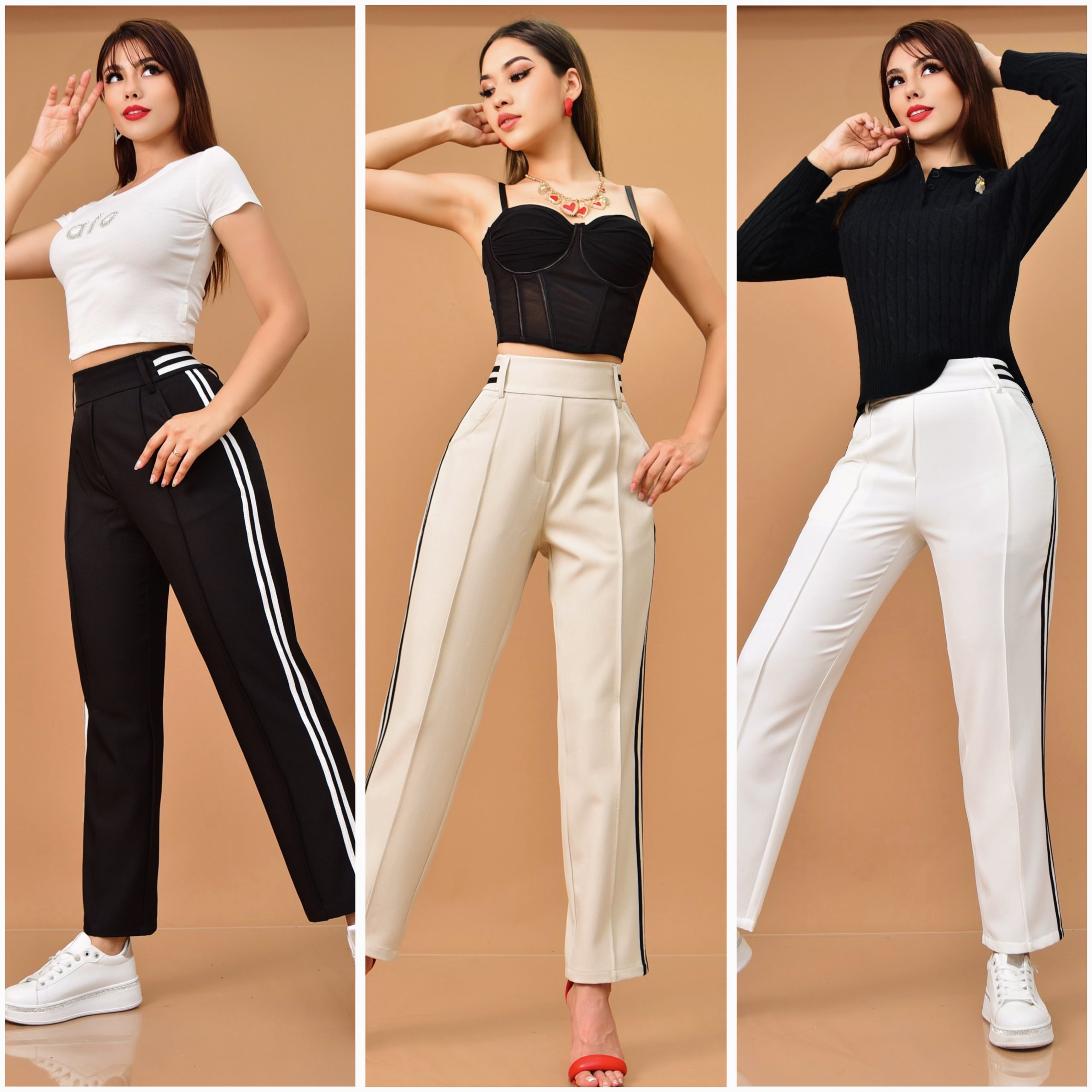 Pantalón corte tipo Zara. Cuenta con franjas laterales y en cintura que aportan un detalle moderno y sporty. Tiro alto con pinzas frontales para un toque más formal. Tela fresca. Bolsas laterales. Cierre trasero. Ideal para looks casuales, de oficina o salidas relajadas.