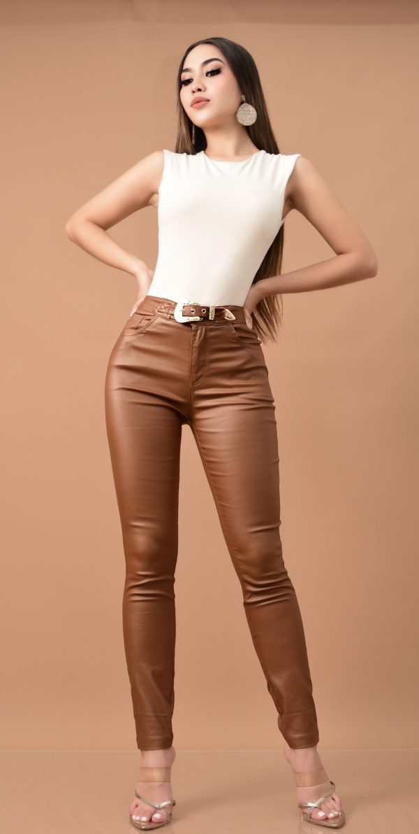 Pantalón de vinipiel stretch que se adapta al cuerpo, diseño ajustado que realza la figura y favorece la silueta. Tiro alto. Bolsillos delanteros y traseros funcionales. Incluye hebilla dorada que simula cinturón. Ideal para crear looks elegantes o atrevidos según la ocasión. Perfecto para combinar con blusas, tops o chaquetas para un estilo chic y en tendencia. ✨✨
