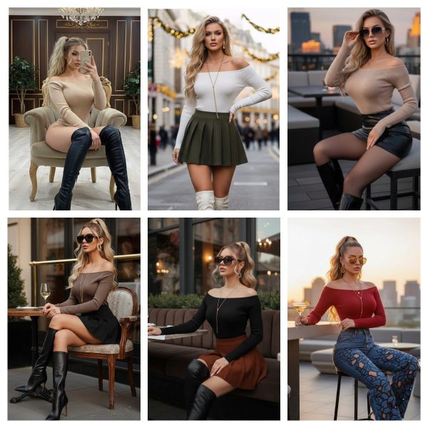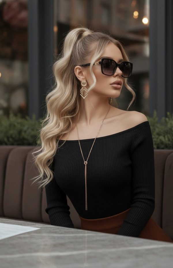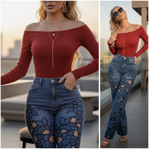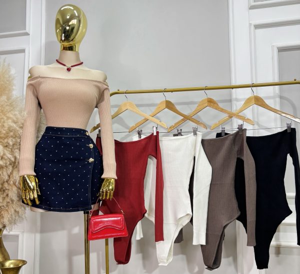 Pantiblusa con hombros descubiertos y manga larga. Ajustada al cuerpo gracias a su tejido de punto acanalado muy suave. Súper stretch. Ganchillos para ajustar.