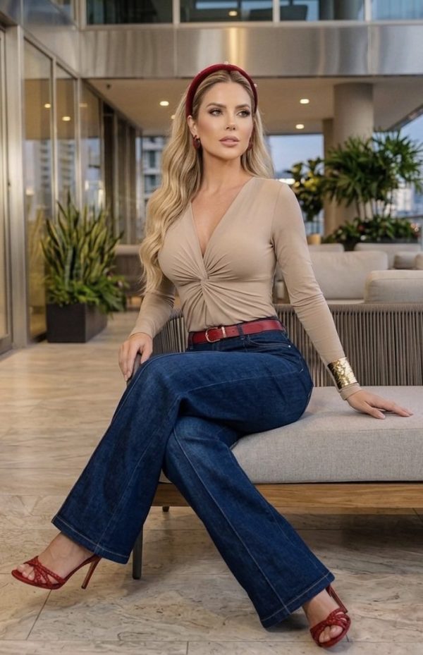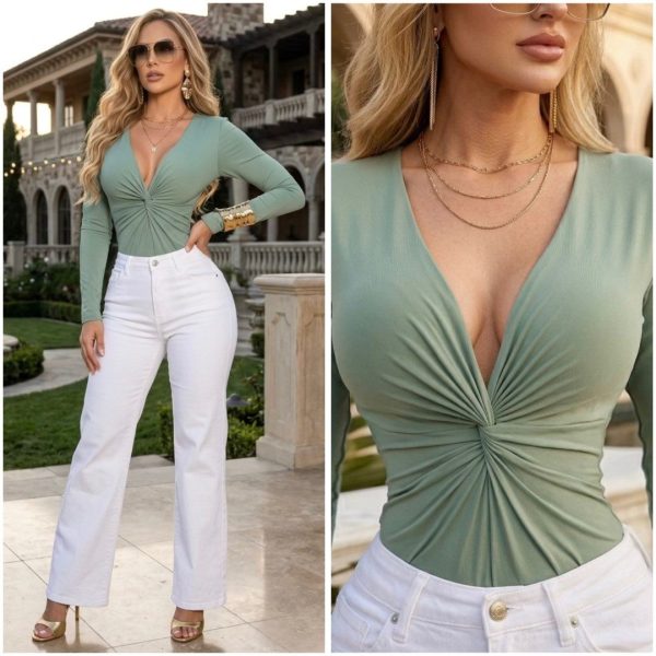 Escote en V con diseño tipo nudo que realza busto 🥰