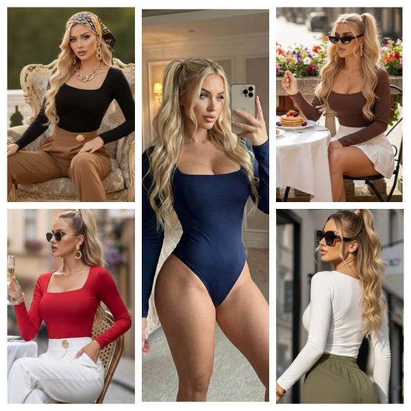 Diseño liso con escote cuadrado. Manga larga.