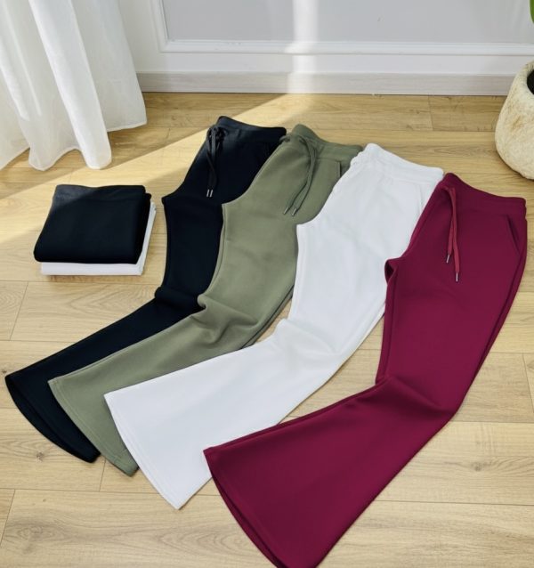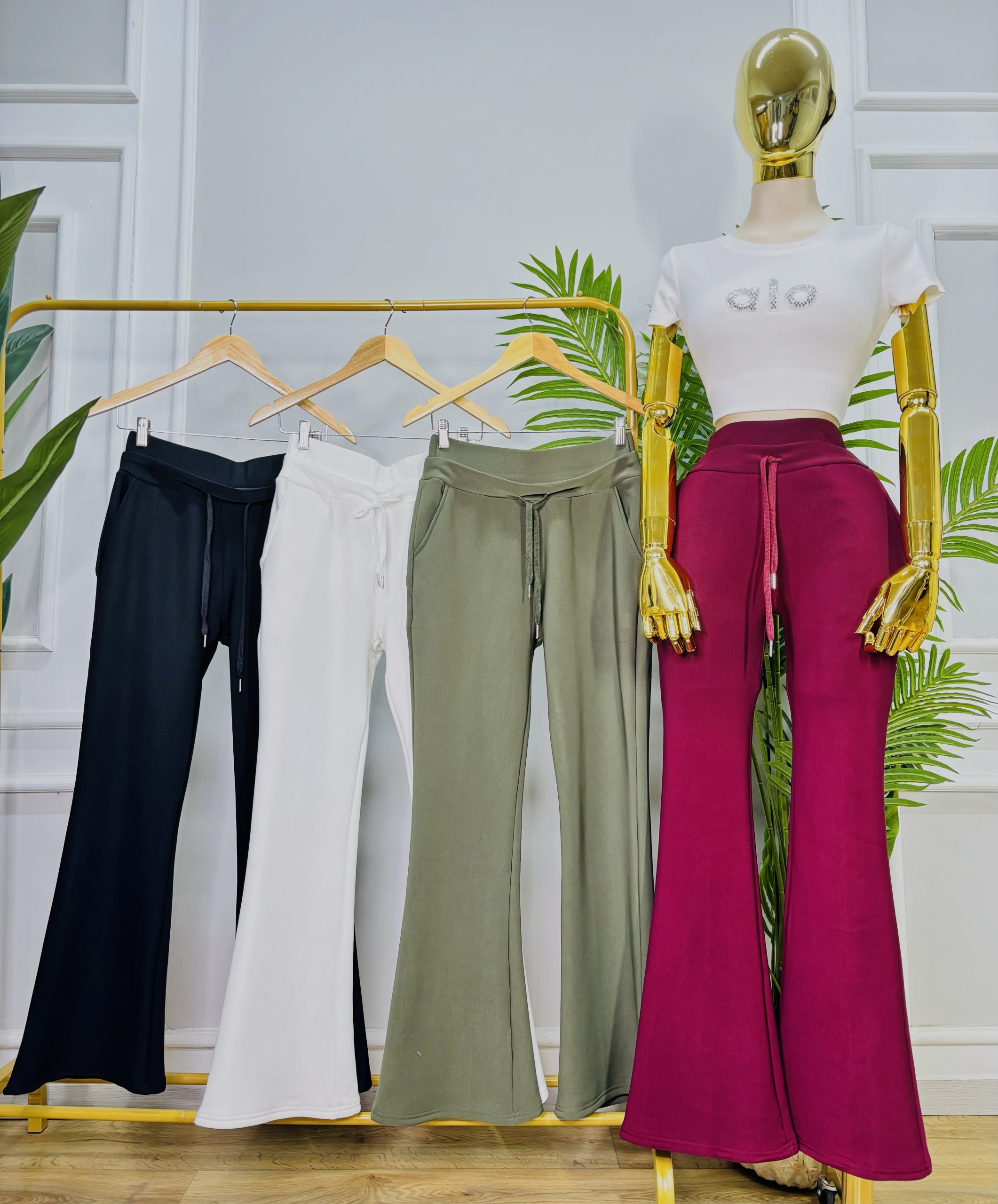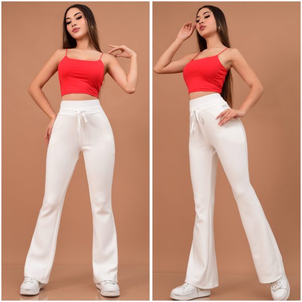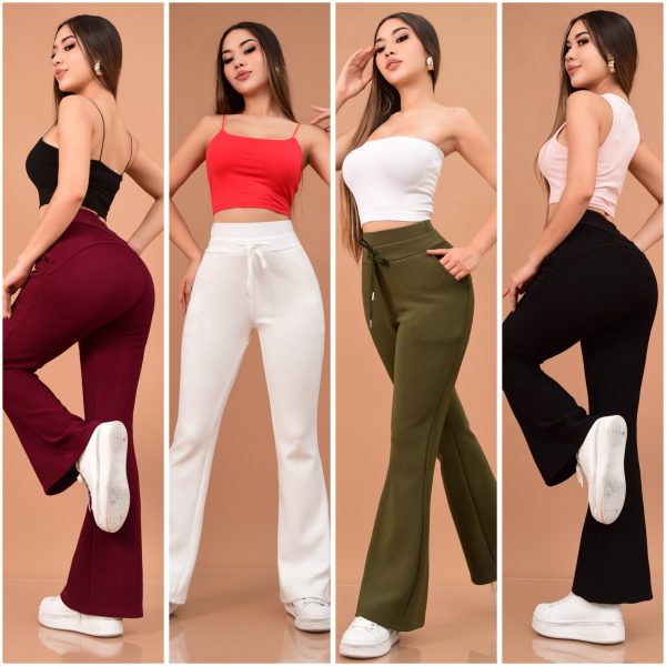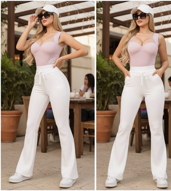 Pants de tiro alto con pretina ancha y jareta ajustable al frente. Bolsillos laterales funcionales y corte acampanado que estiliza la figura. Confeccionados en tela suave, cómoda, con stretch e interior suave. Ideal para looks casuales y relajados. ✨