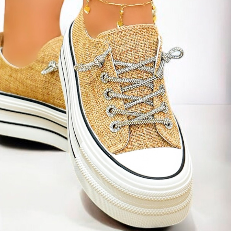 Sneaker de silueta clásica canvas, en dos materiales y colores, suela gruesa y puntera de plastico.