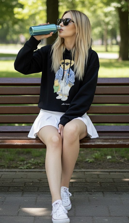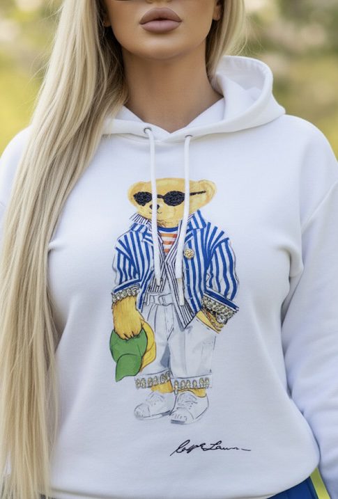 Sudadera estilo casual, confeccionada en tejido suave y fresco. Diseño con gorro y estampado frontal de osito glam con pedrería que aporta un toque moderno y urbano. Corte relajado. ideal para looks casuales con estilo. 😎