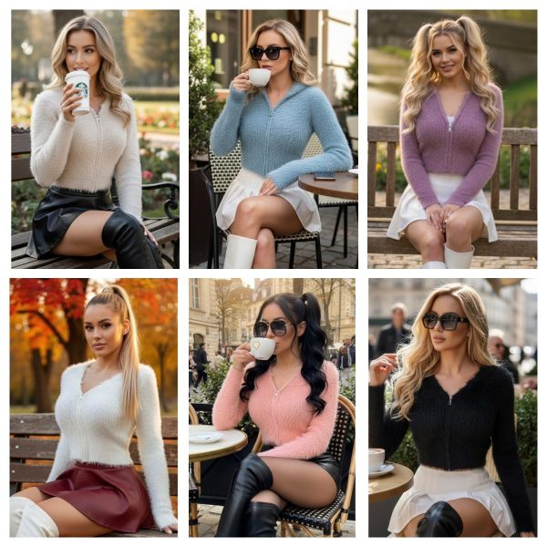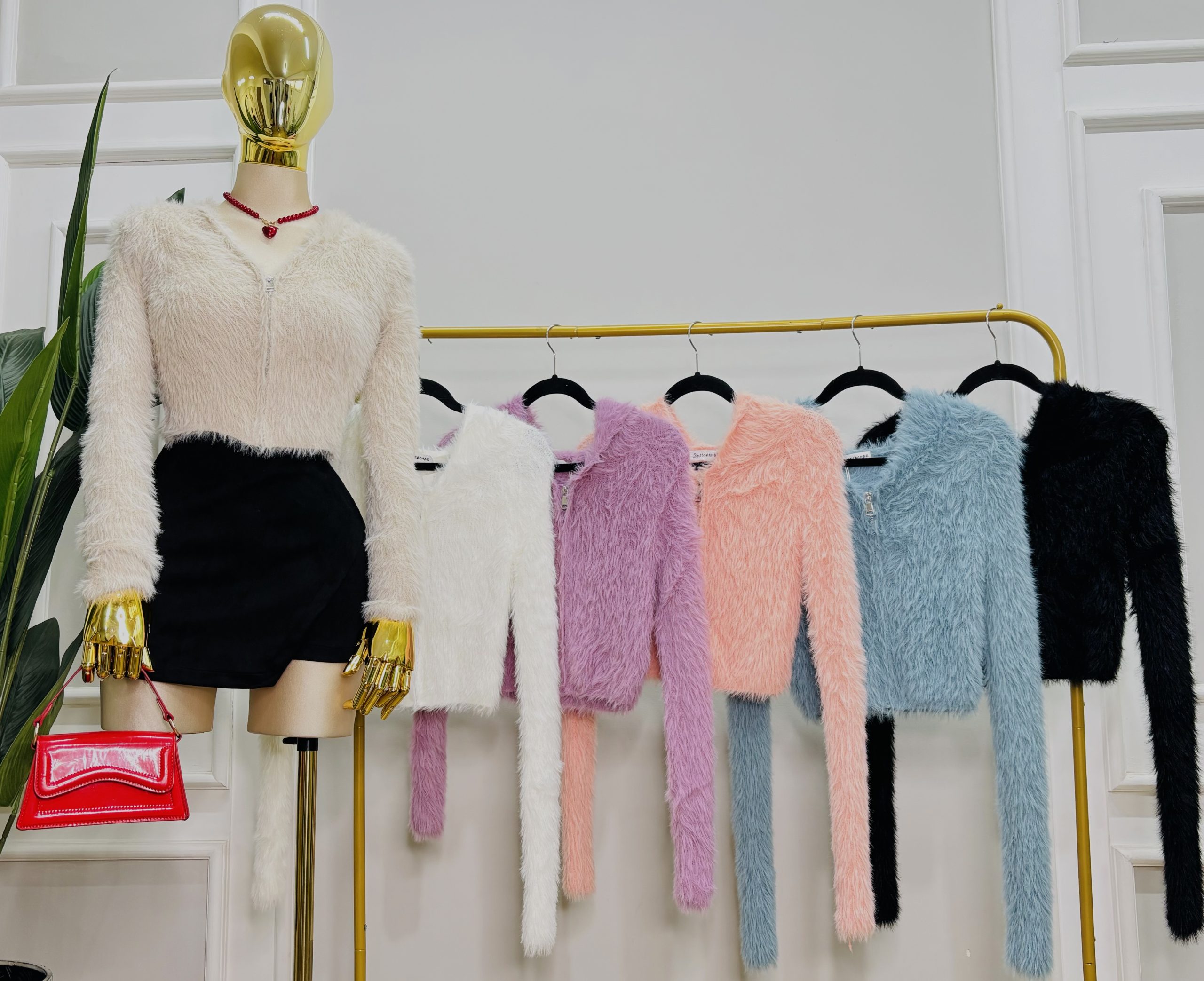 Suéter con cremallera metálica. Capucha. Textura tipo mink. Súper ligero y abrigador. Súper stretch.