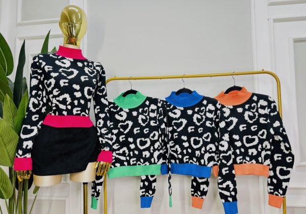 Suéter tejido con diseño animal print en contraste. Cuello, puños y basta en colores vibrantes que aportan un toque moderno y divertido. Perfecto para crear looks casuales con estilo. 😍