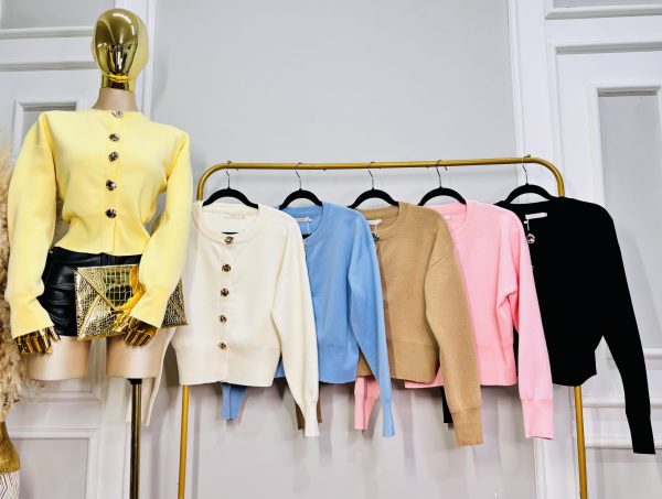 Suéter tejido confeccionado en viscosa semi stretch. Corte clásico y relajado, ideal para looks casuales o formales. Cuello redondo y botones metálicos en tono dorado que le aportan un toque elegante y moderno.