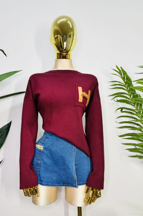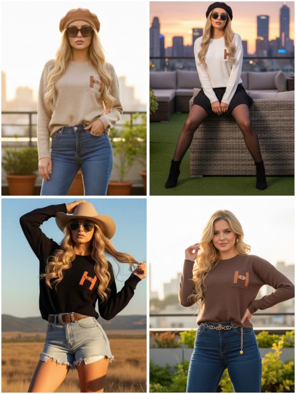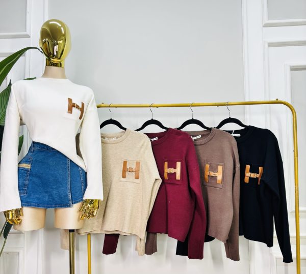 Suéter femenino de estilo moderno y relajado, confeccionado en tejido stretch, suave y ligero. Corte recto y cuello redondo. Bolsillo funcional. Detalle decorativo en el pecho en contraste con hebilla metálica, que aporta un toque original. Perfecto para combinar con mezclilla o pantalones de talle alto y crear outfits cómodos y con estilo. 💕