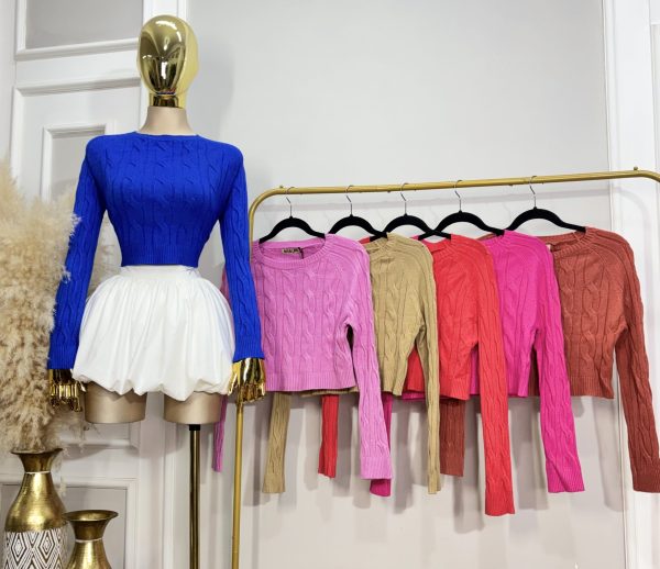 🩷✨ SUETER CROP TEJIDO DISEÑO TRANZADO