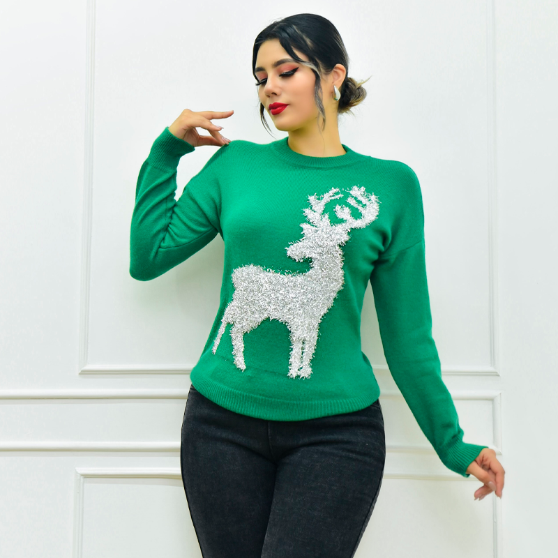 Suéter cuello redondo, manga larga super abrigador. Aplicación de escarchado brillante en forma de reno en parte frontal. 📌 Corte amplio IMPORTACIÓN CALIDAD 💎💎💎💎💎💎💎💎