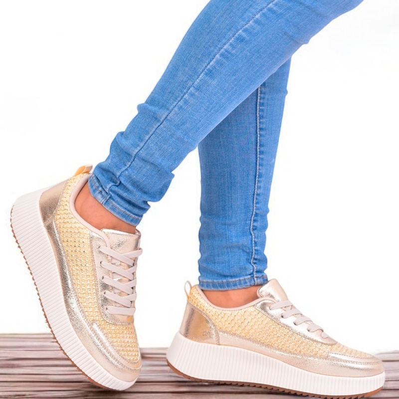 Sneakers suela gruesa texturizada. Incrustaciones de pedrería y brillitos. IMPORTACIÓN USA 🇺🇸