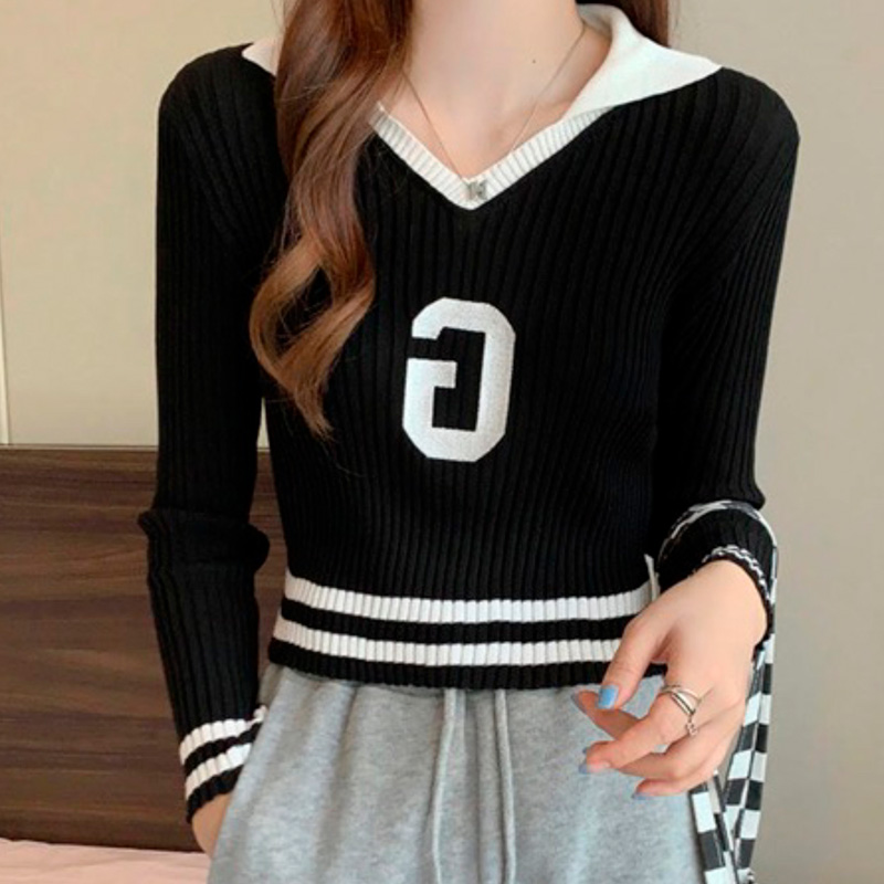 Top de punto estilo universitario, cuello tipo polo y en “V”. Letra al frente. Manga larga. ES UNITALLA PERO TIENE G EN LA ETIQUETA abarca de 5 a 11