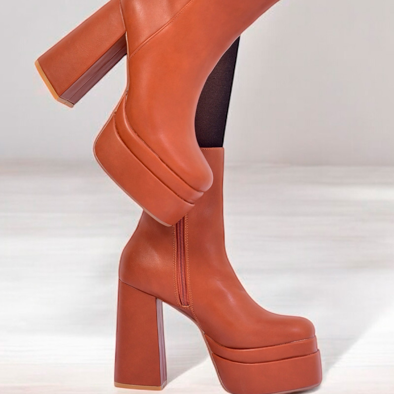 Botines tacón cuadrado y plataforma. Color liso. Cierre latera. Altura de caña media. Tacón: 13 cm Plataforma: 5 cm IMPORTACIÓN USA 🇺🇸
