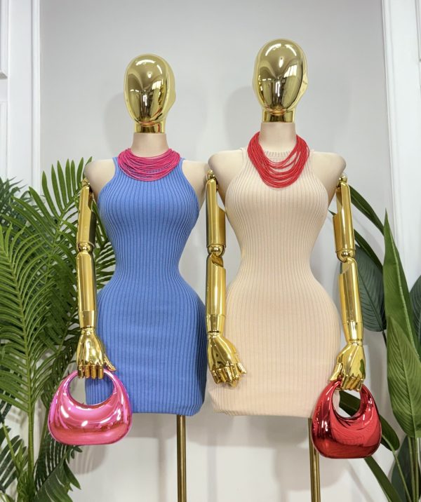 Vestido tejido de corte ajustado que realza la silueta con diseño de líneas verticales creando un efecto estilizador. Cuello redondo. Tejido tipo rib con elasticidad brinda comodidad, ajuste perfecto y libertad de movimiento. Largo midi, perfecto para looks casuales o elegantes.