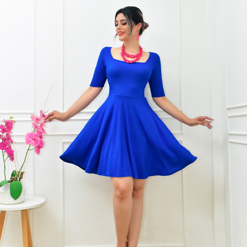 Vestido corte línea A. Tela acanalada, mangas corta baja. Stretch. Super fresco. Escote cuadrado