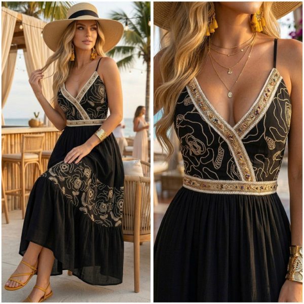 🌊😌 VESTIDO BOHÓ CON DETALLES BORDADOS