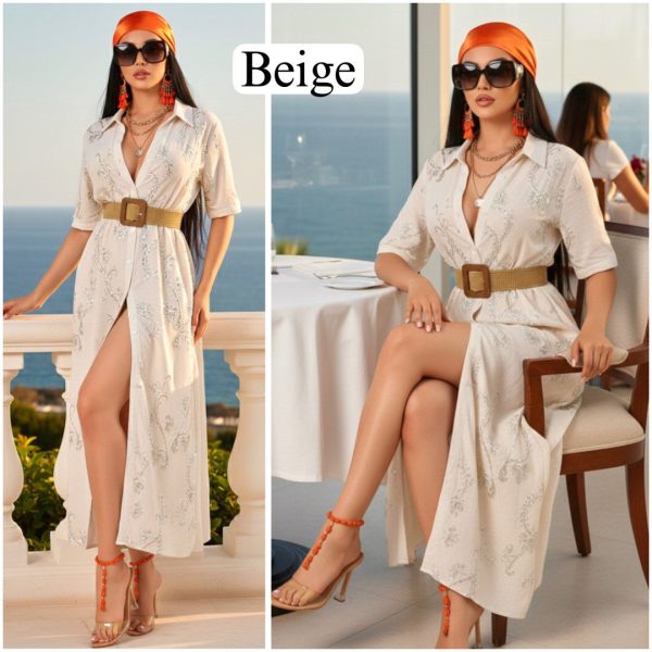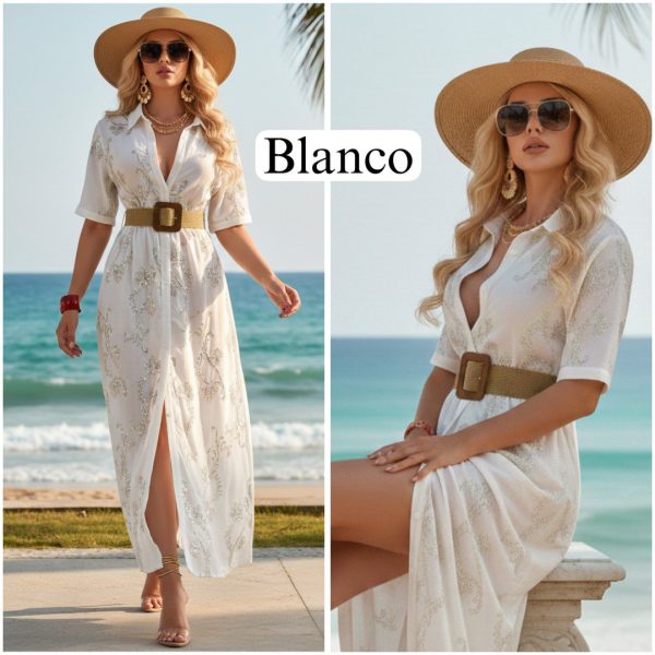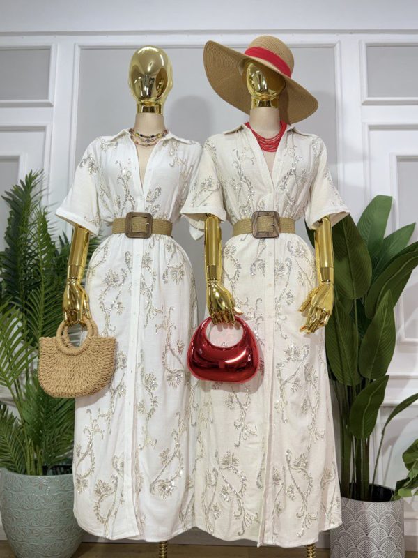 🤍🌾 VESTIDO CAMISERO BORDADO LENTEJUELA