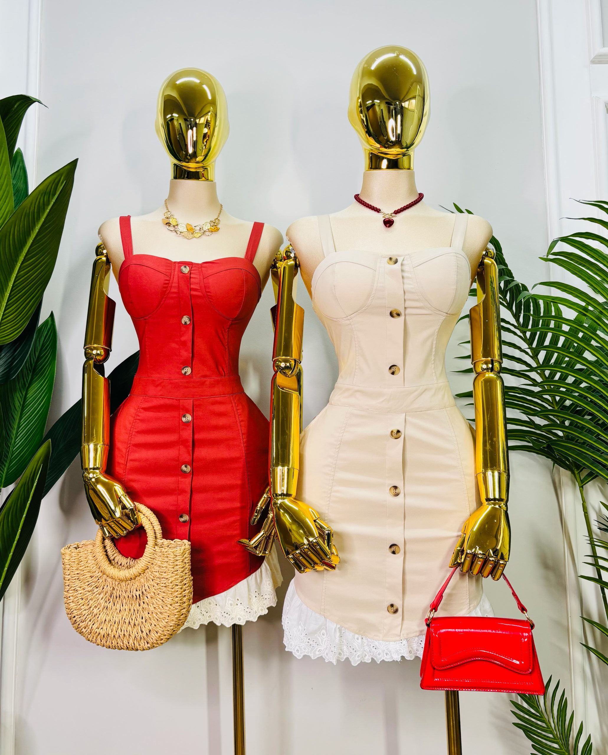 Hermoso vestido fresco y femenino que combina elegancia con un toque moderno. ✨Confeccionado en tela stretch, fresca y ligera, se adapta suavemente a tu figura brindando comodidad y estilo. Tirantes anchos ajustables, botones decorativos al frente que le añaden un estilo elegante y moderno, bolsillos funcionales, cierre en la parte trasera para un major ajuste y el detalle de encaje bordado en el dobladillo lo convierte en una prenda chic y romántica, ideal para el día o la noche.
