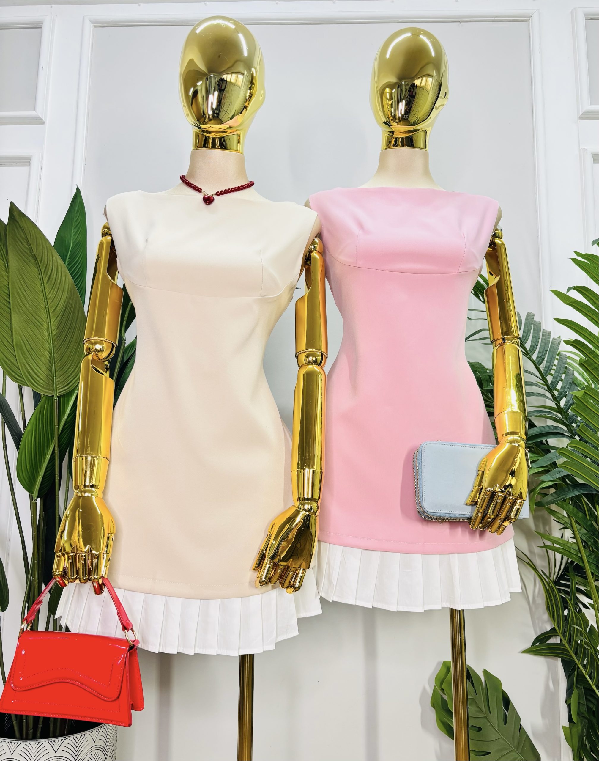 Vestido corto con diseño minimalista en tendencia y corte recto que estiliza la silueta. Delicado detalle de plisado en el bajo, que aporta un toque femenino y elegante. Cierre invisible en espalda. Ideal para looks casuales chic, salidas especiales o eventos de día y noche. 💕