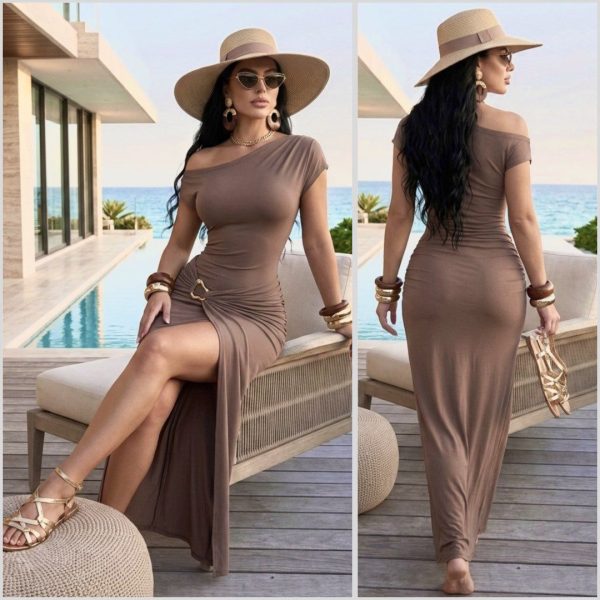 Sé la primera en opinar “VESTIDO CON DRAPEADO Y DETALLE DORADO”