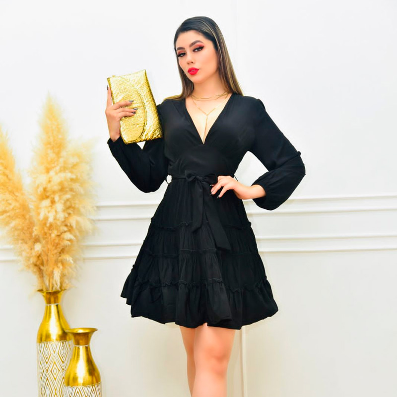 Vestido corte princesa. Cinta en mismo tono. Escote en V. Manga larga con elástico en muñeca. 📌 Corte fiel a la talla IMPORTACIÓN CALIDAD 💎💎💎💎💎💎💎💎