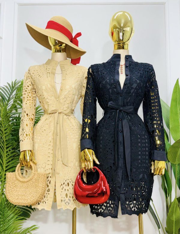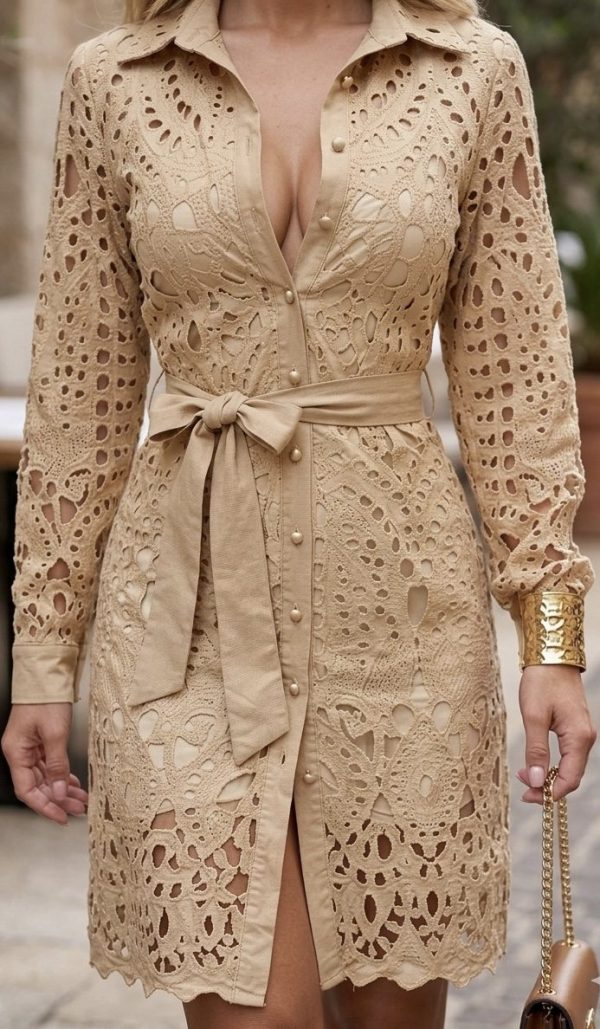 Vestido corto de encaje calado con diseño elegante y romántico. ✨
