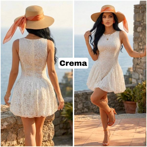 💗 VESTIDO CORTO DE ENCAJE DISEÑO GLOBO