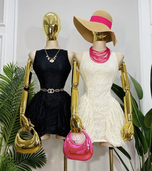 Vestido corto confeccionado en encaje floral, femenino y sofisticado. ✨