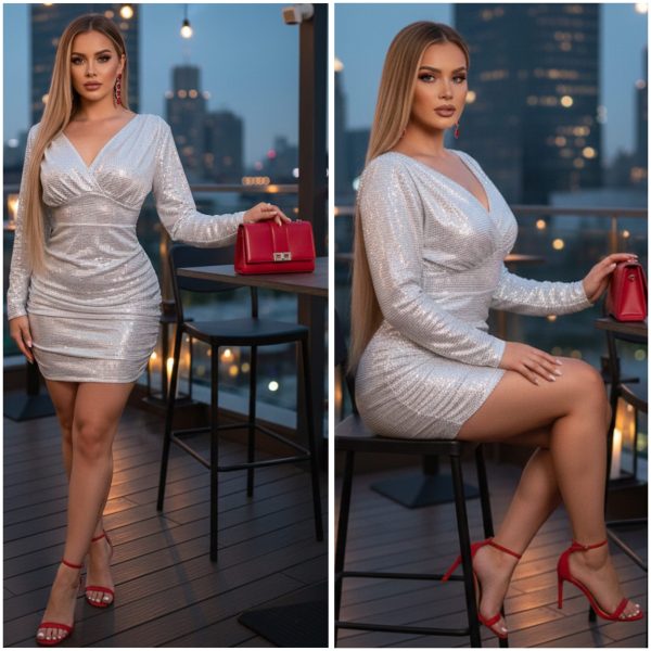 🪩✨ VESTIDO CORTO DE LENTEJUELA ESCOTE CRUZADO