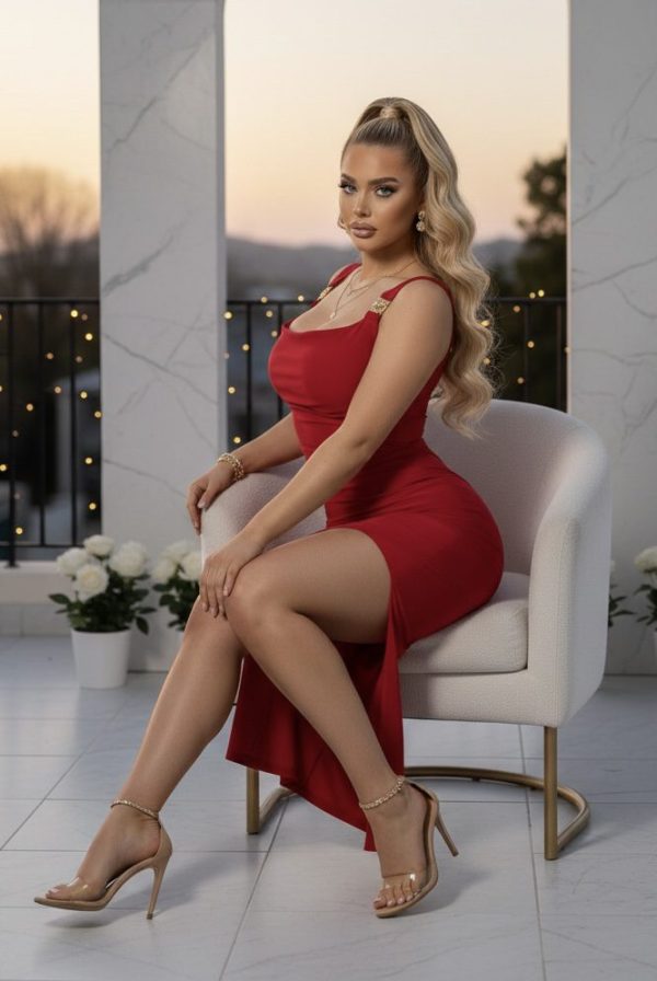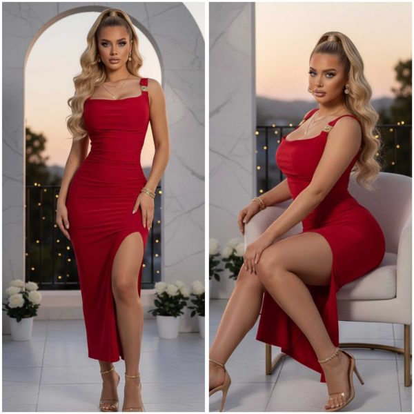 Abertura lateral. Ideal para eventos, cenas o celebraciones y lucir elegante y femenina. 💫