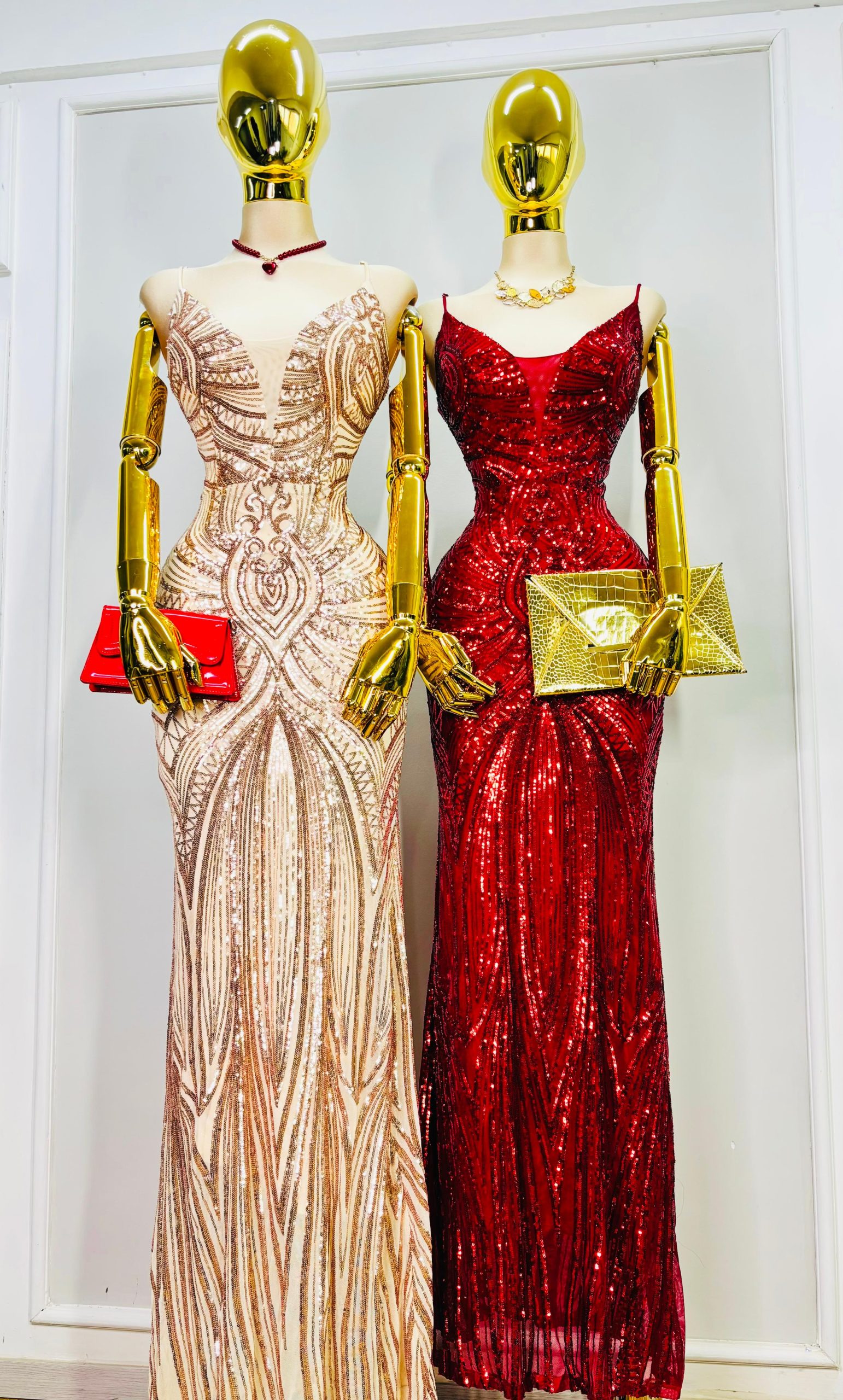 Vestido ajustado cubierto de lentejuelas tornasol y multicolor en líneas. Tirantes ajustables. Espalda descubierta. No estira.