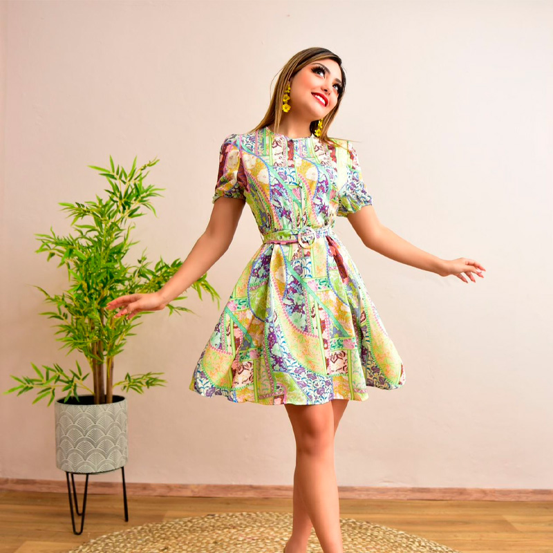 Romántico vestido con un estampado súper en tendencia. Corte circular que queda Perfecto para todo tipo de siluetas.