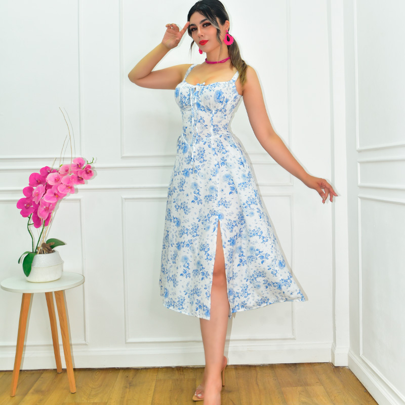 Vestido floral de tirantes anchos. Jaretas en escote para ajustar. Elástico fruncido en espalda. Cierre invisible al costado. Con bolsillos laterales. Acabado semisatinado. Super fresco y elegante.